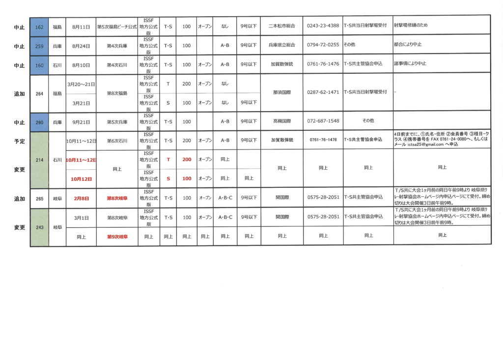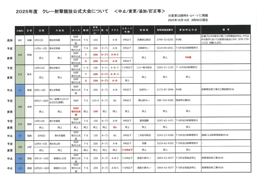 2025年度クレー射撃競技公式大会について(変更/追加/訂正等)