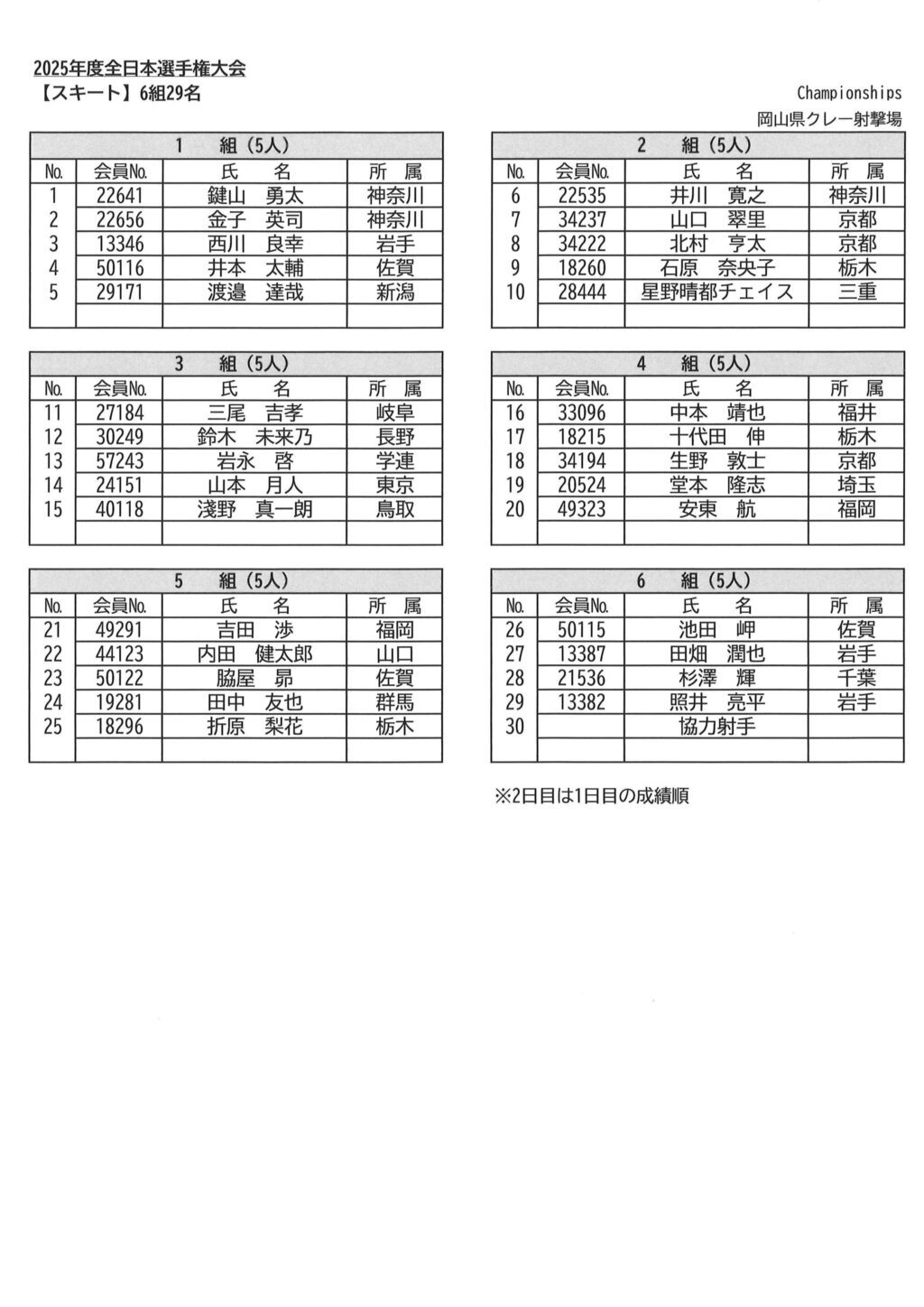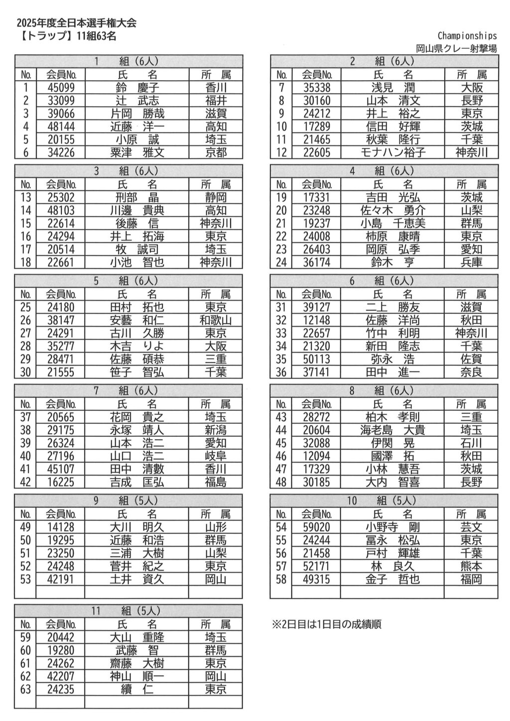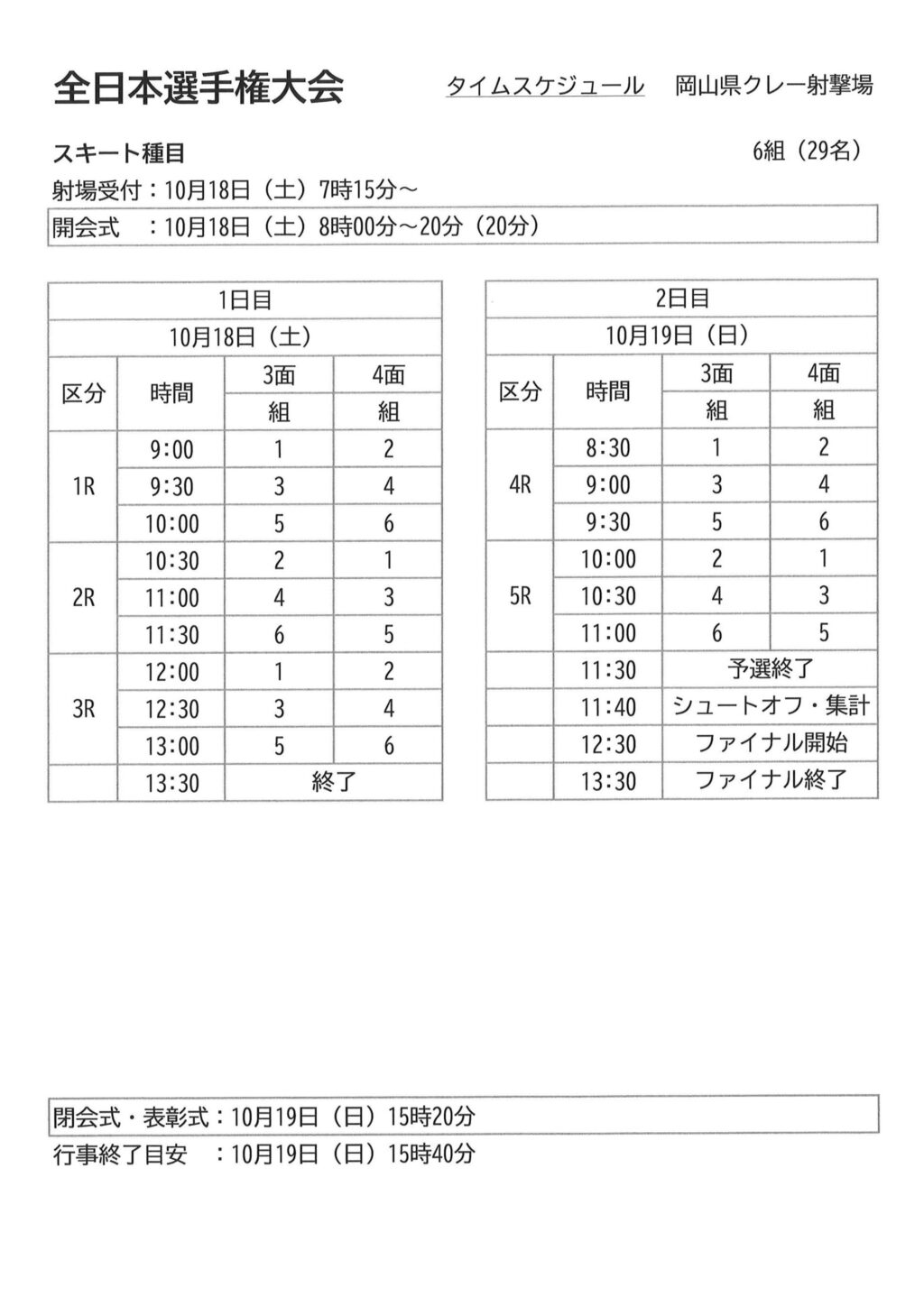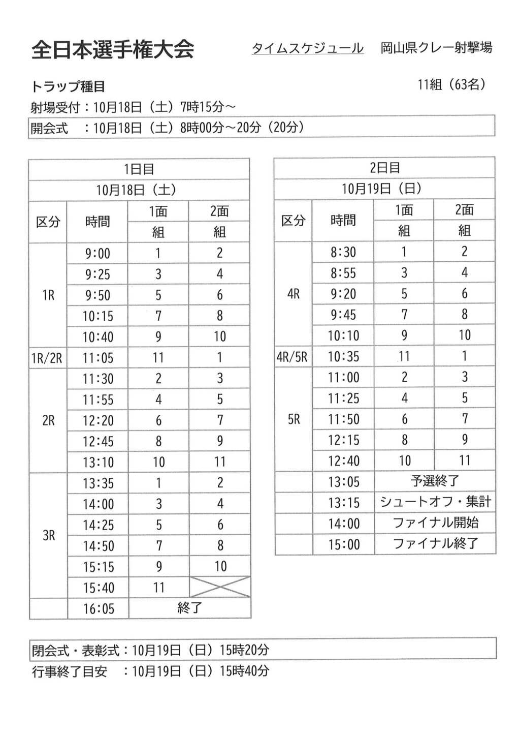 2025年度全日本選手権大会(岡山) タイムスケジュール・射団表