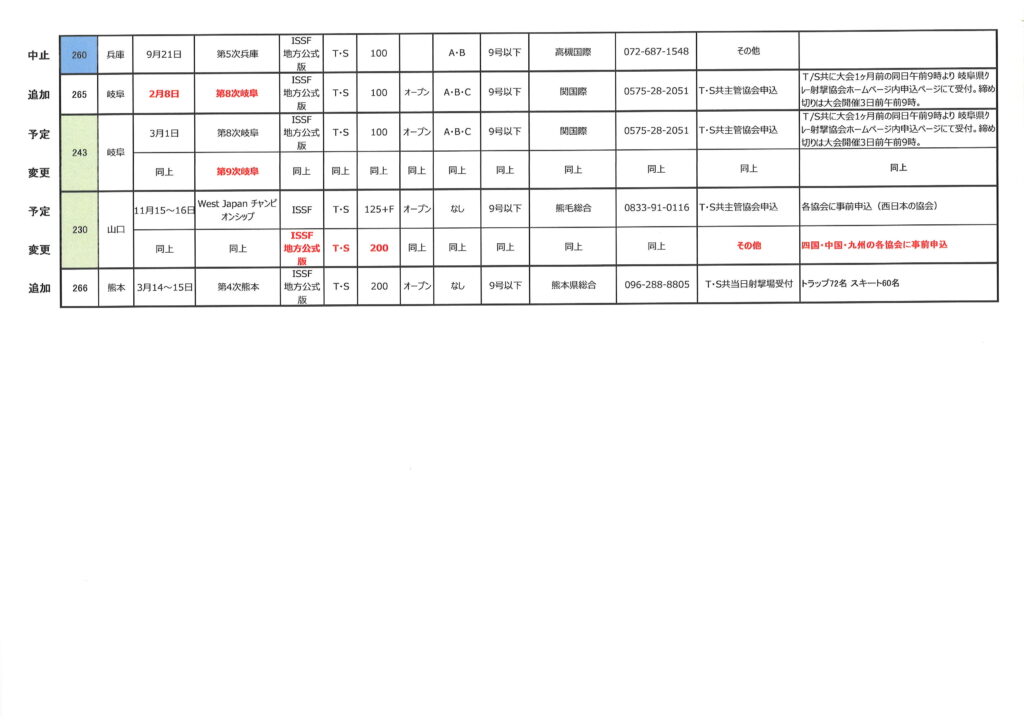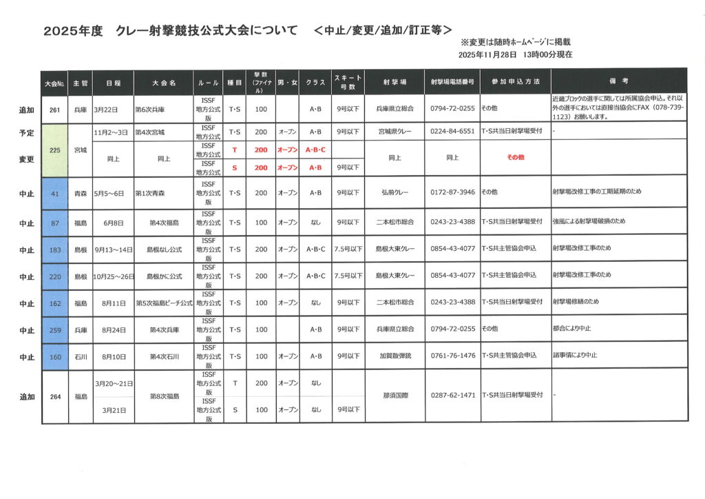 2025年度クレー射撃競技公式大会について(変更/追加/訂正等)