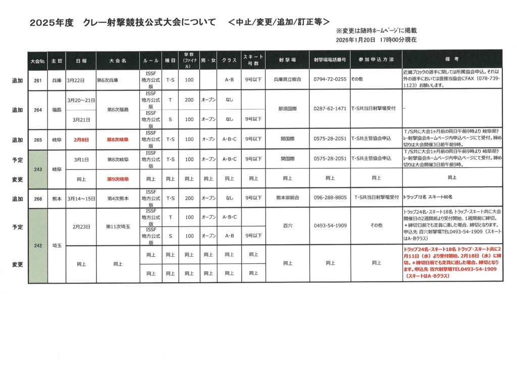 2025年度クレー射撃競技公式大会について(変更/追加/訂正等)