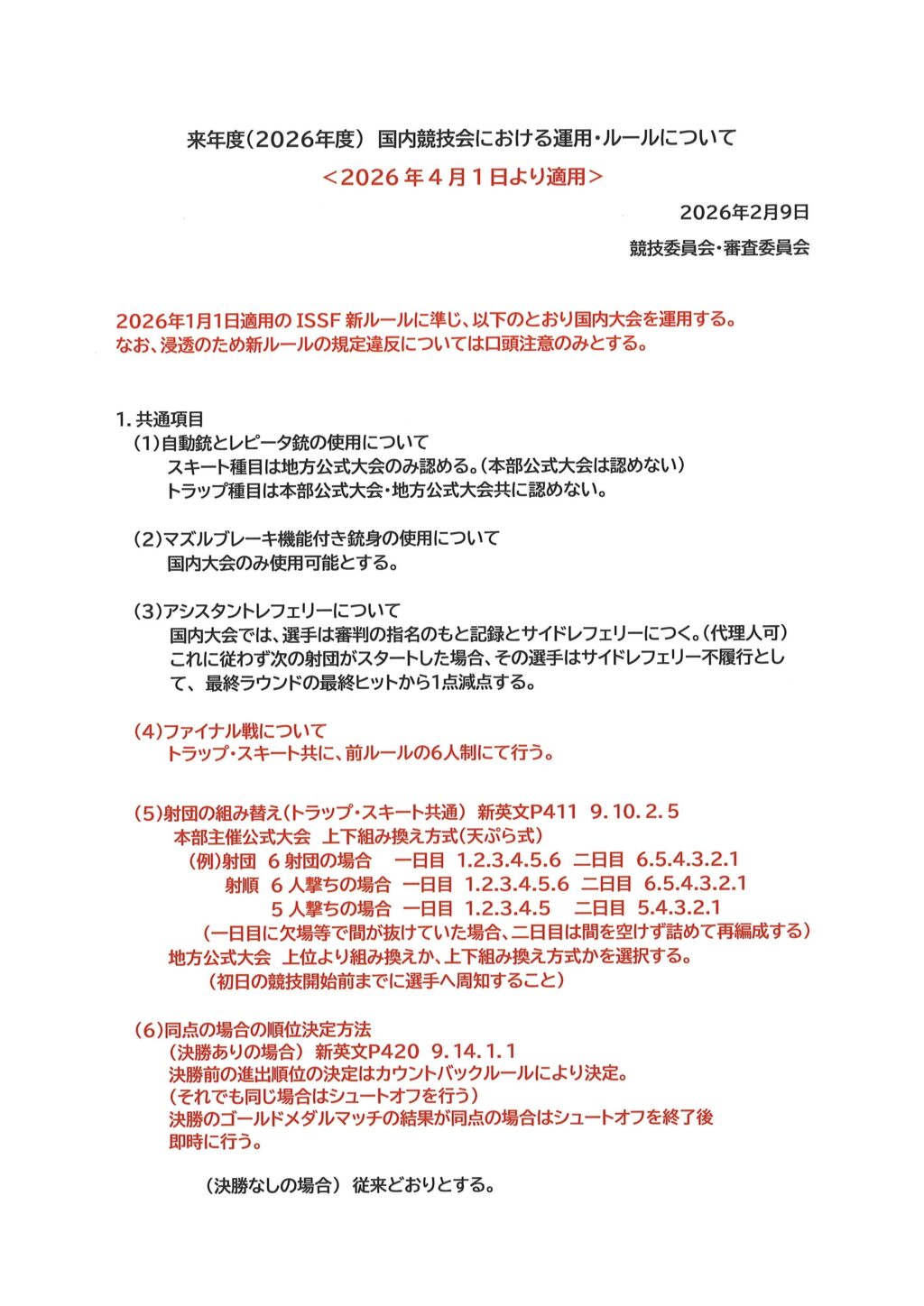 来年度(2026年度) 国内競技会における運用・ルールについて