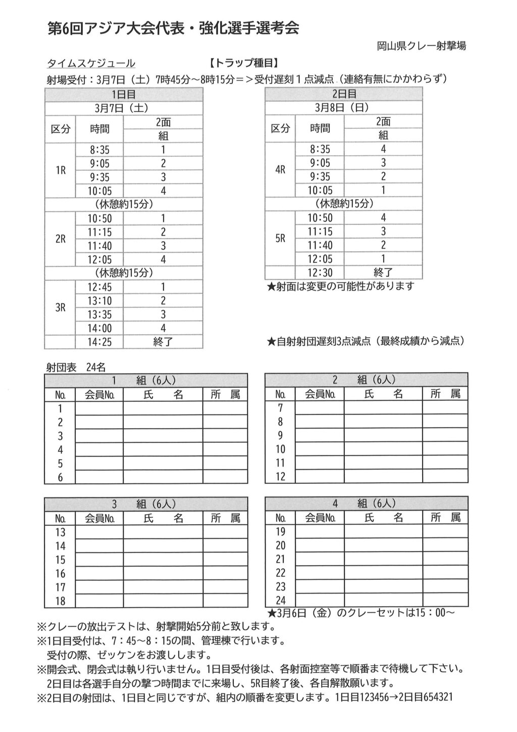 第6回名古屋アジア大会代表選手・2026-2027年度強化指定・育成選手選考会 タイムスケジュール 2026年2月28日2026年2月27日 第6回名古屋アジア大会代表選手・2026-2027年度強化指定・育成選手選考会 タイムスケジュール