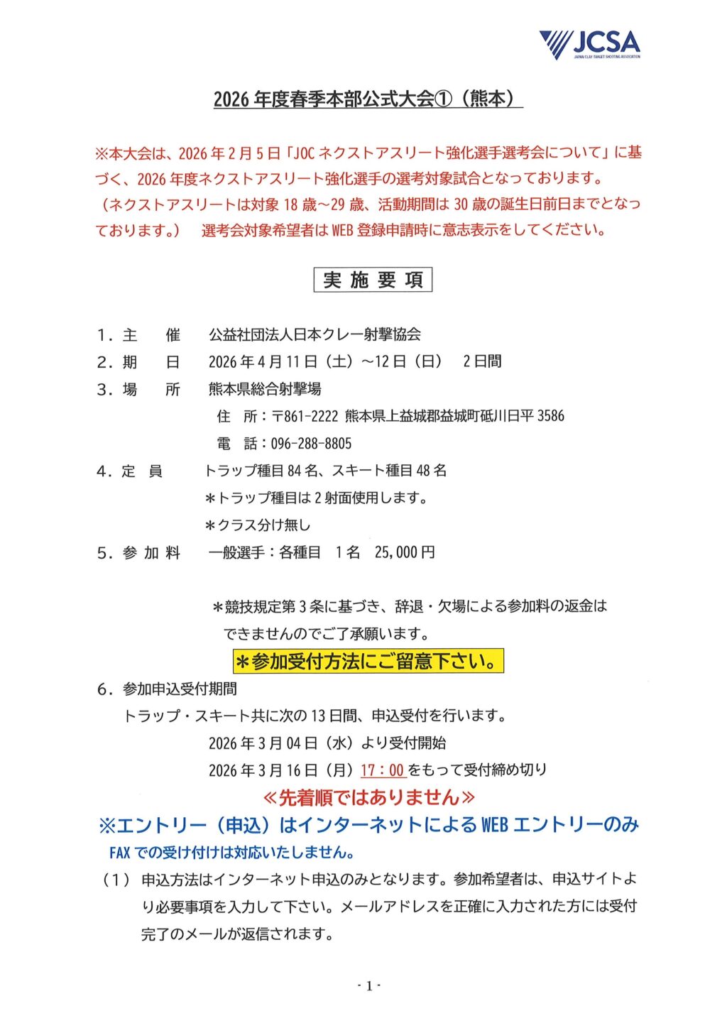 2026年度春季本部公式大会①(熊本)実施要項