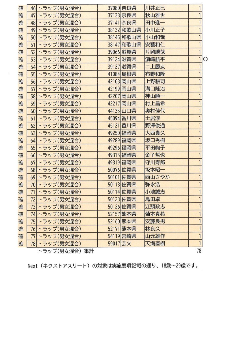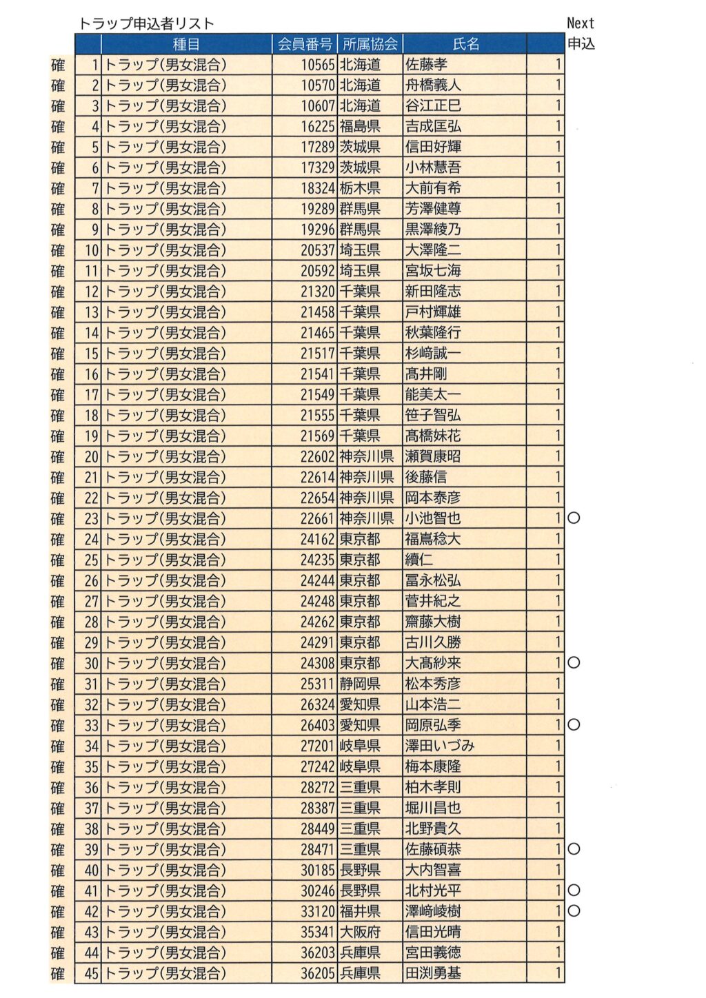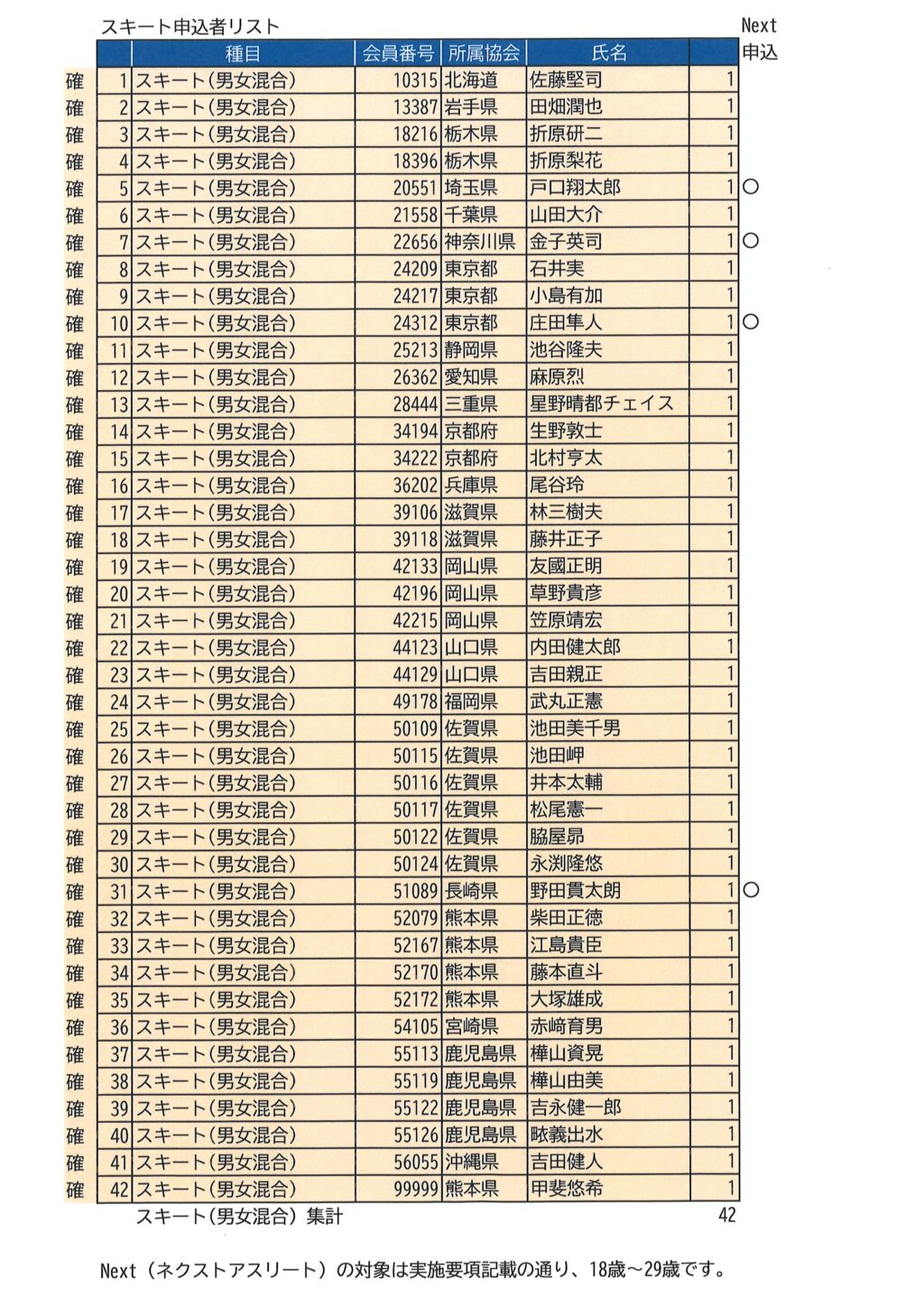 2026年度春季本部公式大会①熊本 申込結果<最終>